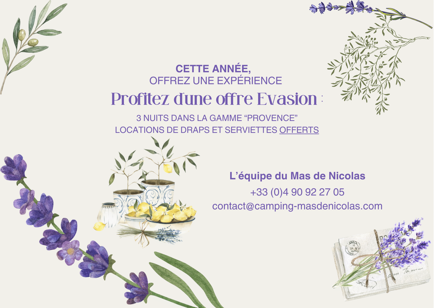 Contactez nous à l’adresse email suivante pour toutes questions ou informations : contact@camping-masdenicolas.com